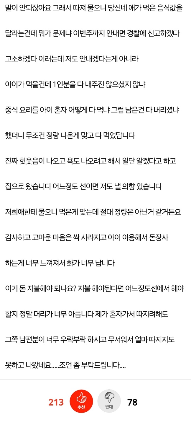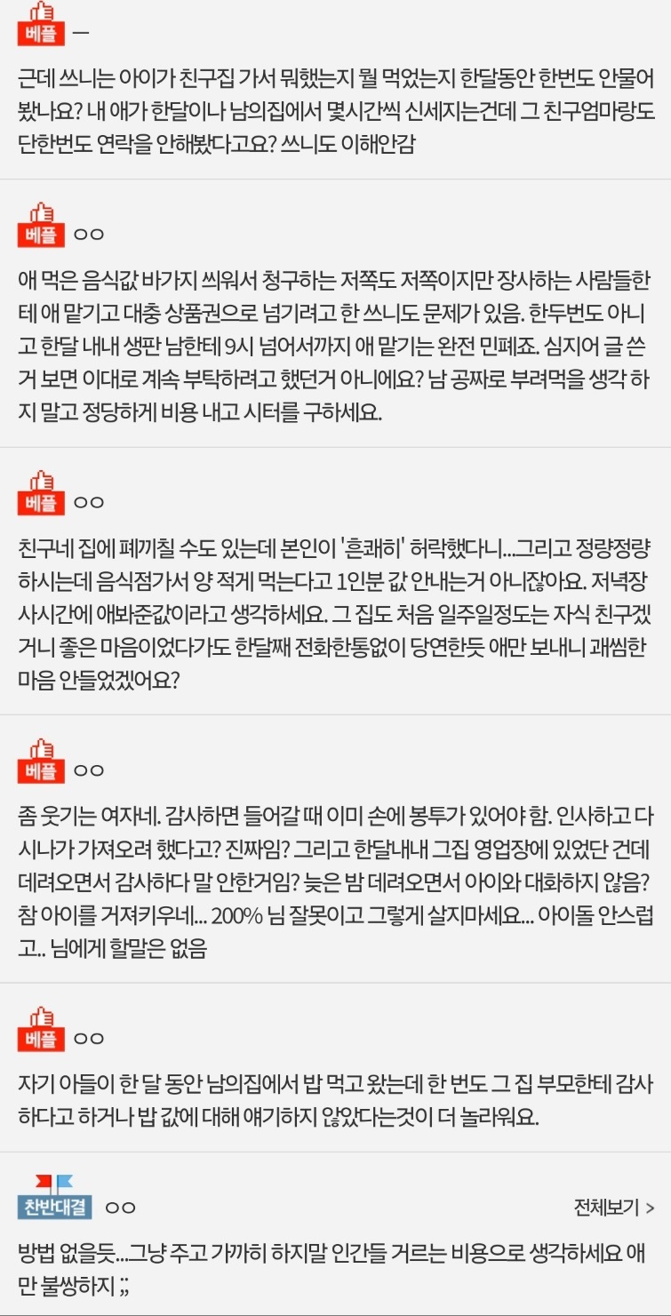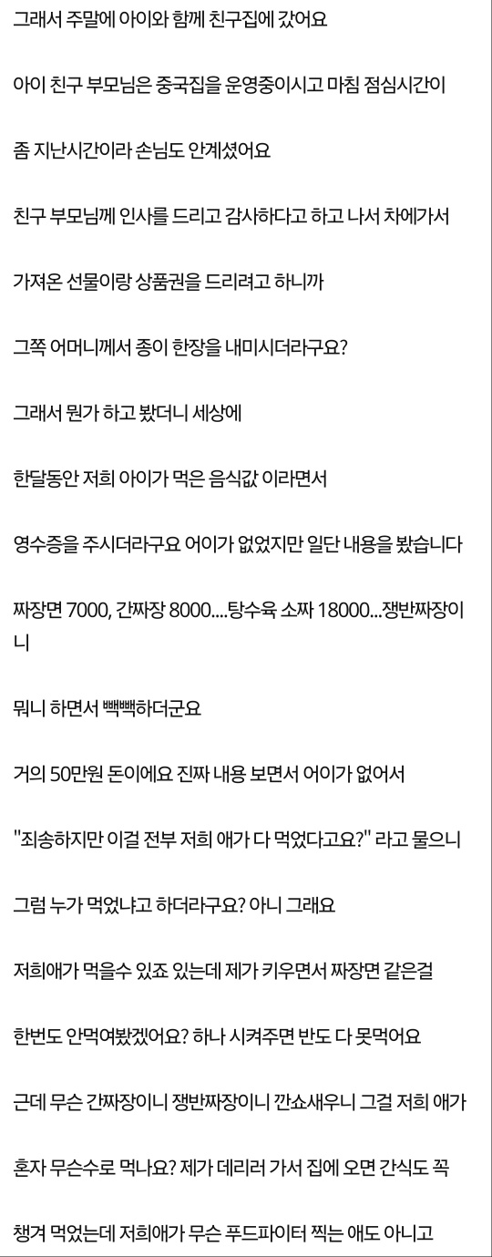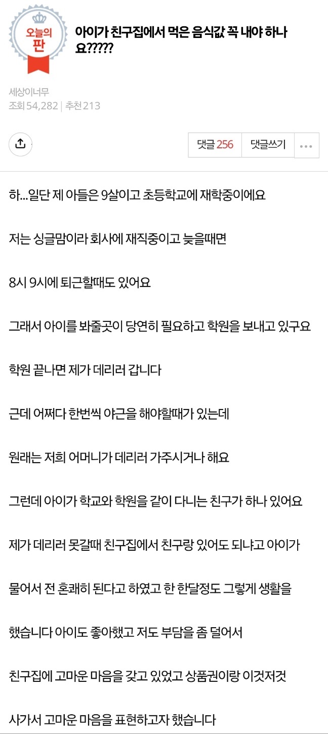 아이가 친구집에서 먹은 음식값 꼭 내야 하나요?????