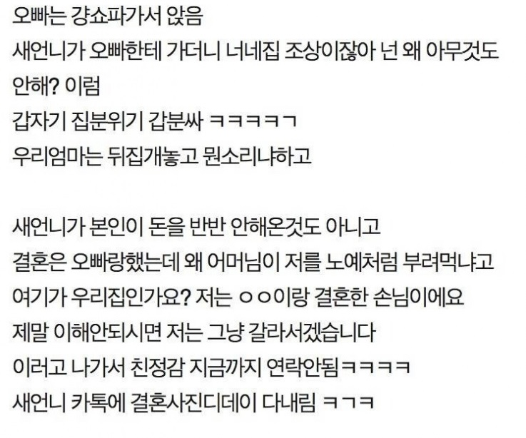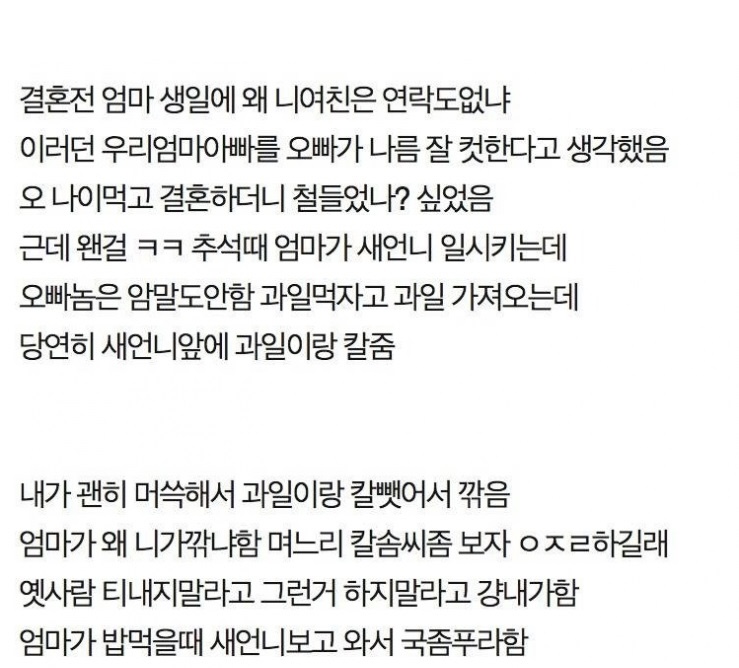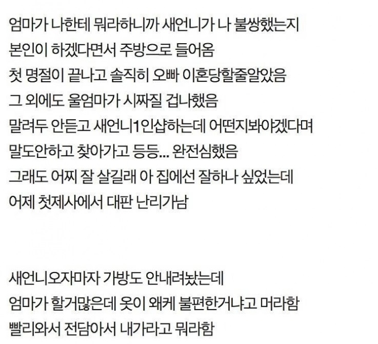 첫 제사에서 오빠네 부부 개판 싸우고 이혼한다 함 ㄷㄷ